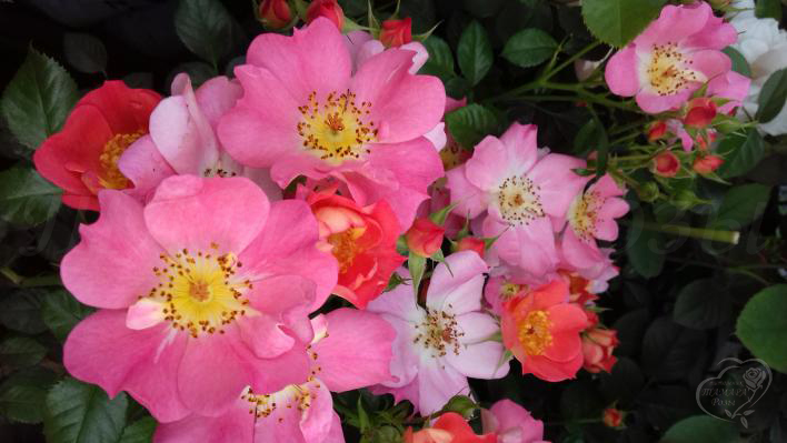 Это обширная группа садовых роз, умело сочетающих красивую форму куста и пышное цветение, продолжающееся до поздней осени. Кусты компактные 15-40 см высотой, с густой изящной мелкой листвой. Цветки, как правило, около 2 см в диаметре, могут быть разнообразной формы и окраса. В уходе просты и неприхотливы.