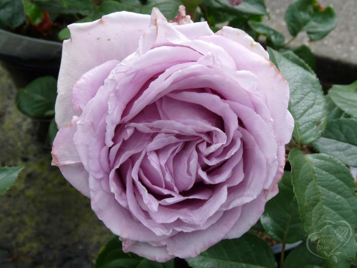 Цветы старинной формы, крупные (10-15 см в диаметре), махровые (более 25 лепестков). Нежные бархатистые лепестки холодного сиреневого цвета с пурпурными оттенками. Соцветия небольшие (1-3 бутона), но тяжелые, от чего цветоносы немного поникают. Аромат легкий.